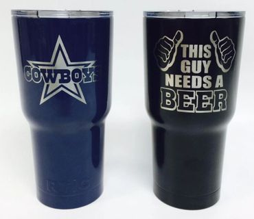 Engraving is one of the best ways to personalize an item for a gift or yourself. We can engrave on acrylic, glass, stainless steel, leather and wood materials. We do engrave on stainless steel and colored tumblers.